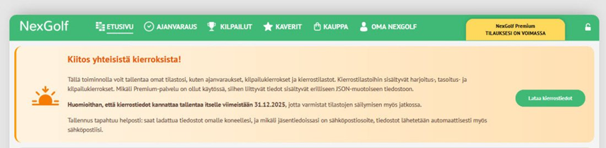 Nedladdningslänken finns under rubriken ”Kiitos yhteisistä kierroksista!”. När spelaren laddar ner filen skickas samma rapport också via e-post och sparas automatiskt på spelarens enhet.